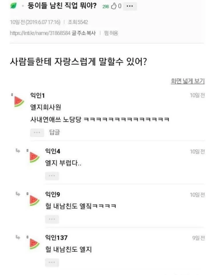 “둥이들 남친 직업 뭐야?”(둥이들 : 자기네들끼리 부르는 호칭)