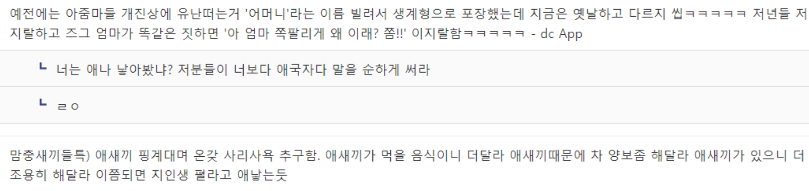 욕하기 좋은 속성을 가지고 있는 계층이 '맘'을 비롯한 아지매만 있는 건 아니다.